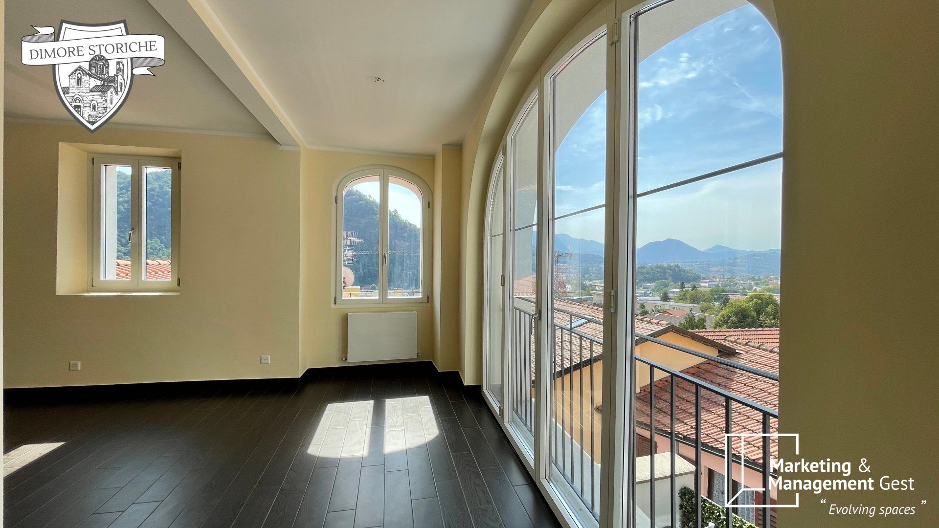 Di qui si accede alla camera master, unica nel suo genere con ampia finestra a 4 ante e due ulteriori finestre, che si affacciano tutte sulla zona sud/sud-ovest e rivolgono la vista all’ampia valle verso Lugano.