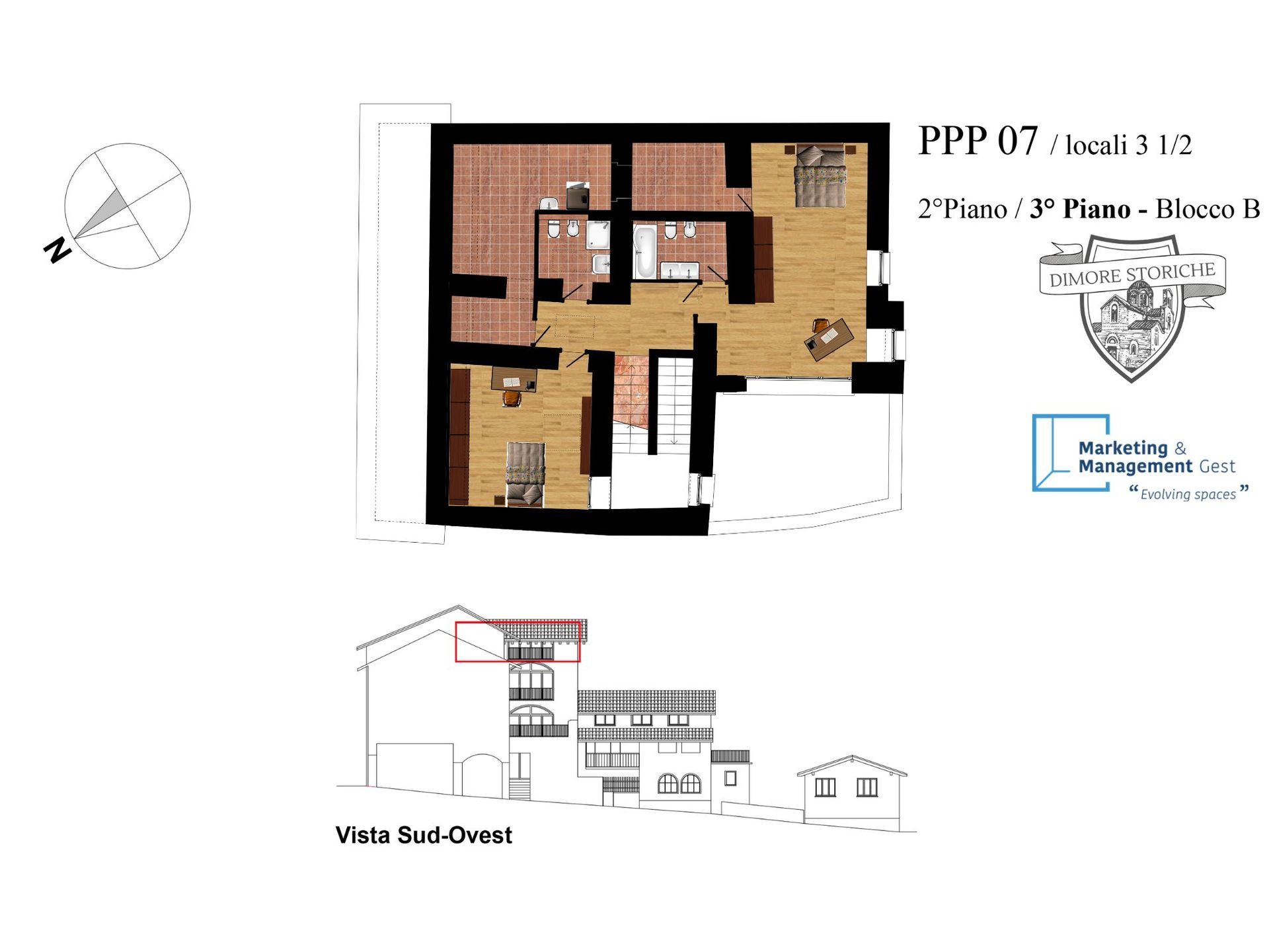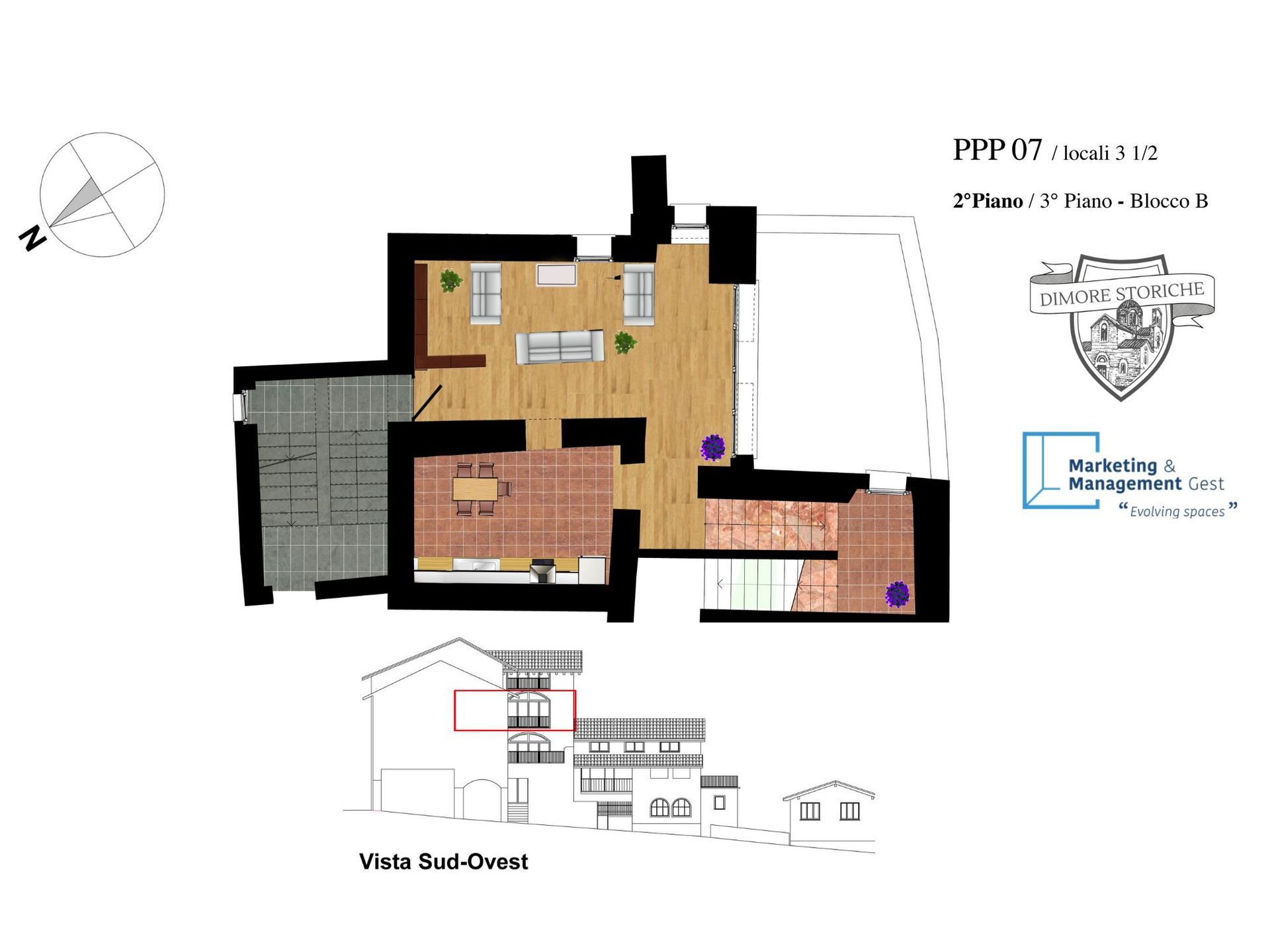 Completano l’appartamento una cantina ed un posto auto ubicato a pochi metri dall’ingresso della corte, in garage coperto.