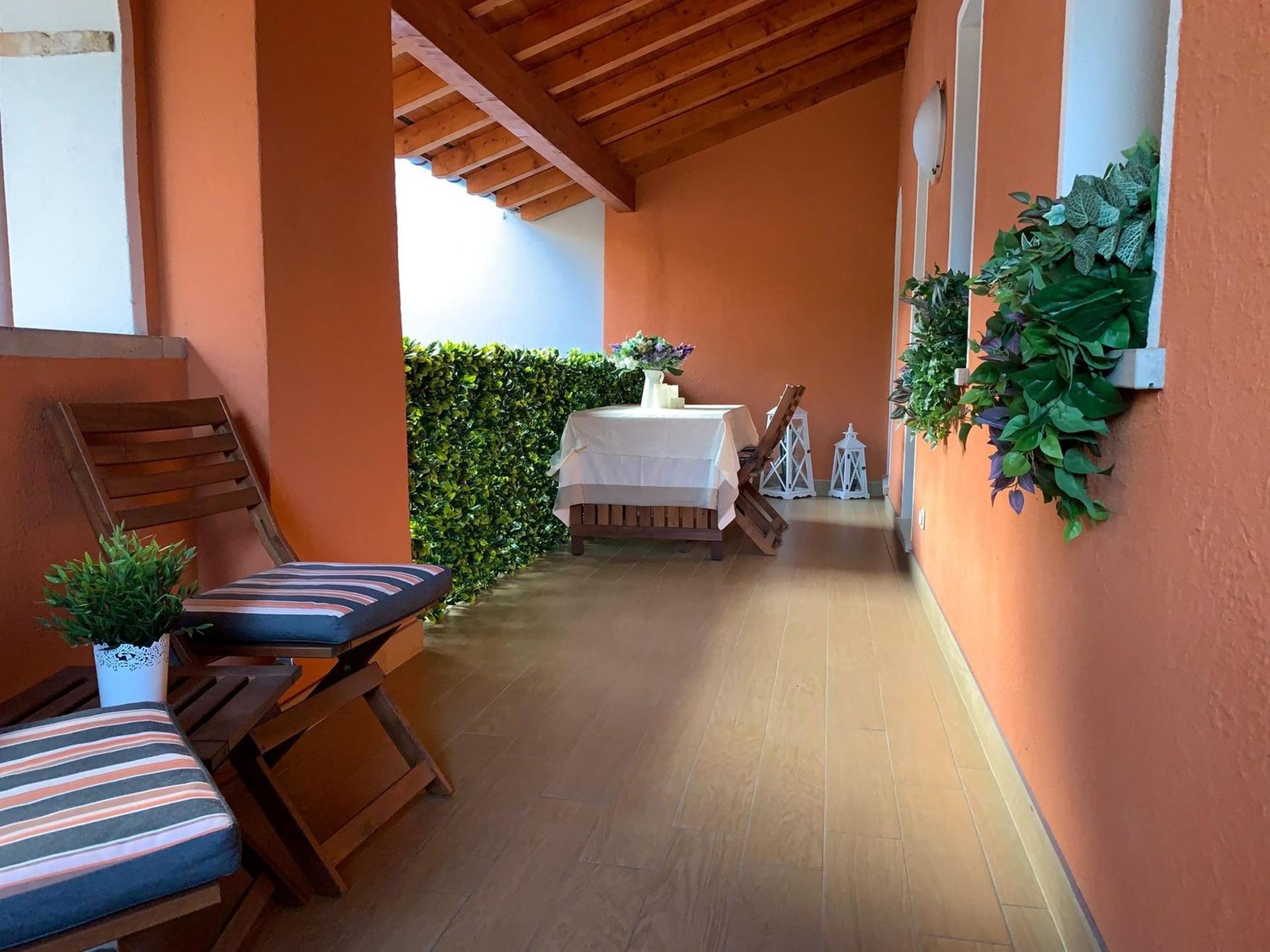 Dalla Cucina si accede, attraverso un'ulteriore porta-finestra al grande terrazzo con volte di oltre 20 mq, coperto da uno splendido tetto con travi a vista.